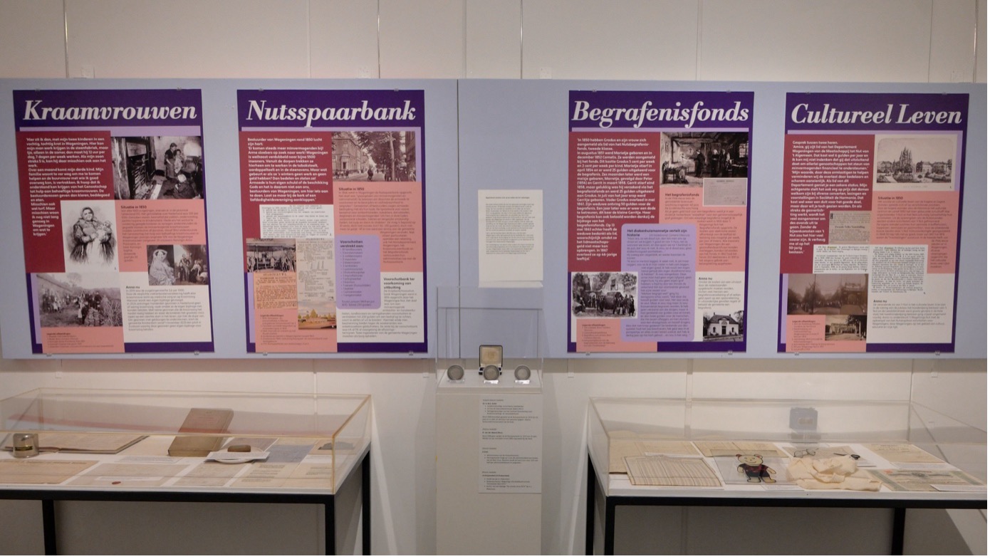 De expositie belicht vooral de periode rond 1850, maar toont ook latere ontwikkelingen, zoals de verbetering van woningtoestanden in de 20e eeuw, verbetering van onderwijs door de oprichting van de nutskleuterscholen en de nutsambachtscholen, en de rol van het Nut anno nu in Wageningen. Bezoekers ontdekken hoe zwaar het leven voor de armen in de 19e eeuw was én hoe het Nut verschil maakte. Dankzij bijdragen van Cor den Boer (voormalig voorzitter van de Maatschappij en actief in het Onderwijsmuseum Dordrecht) en Paul Zaal (oud-medewerker van de Nutsspaarbank in Wageningen) konden we veel waardevolle informatie verzamelen.